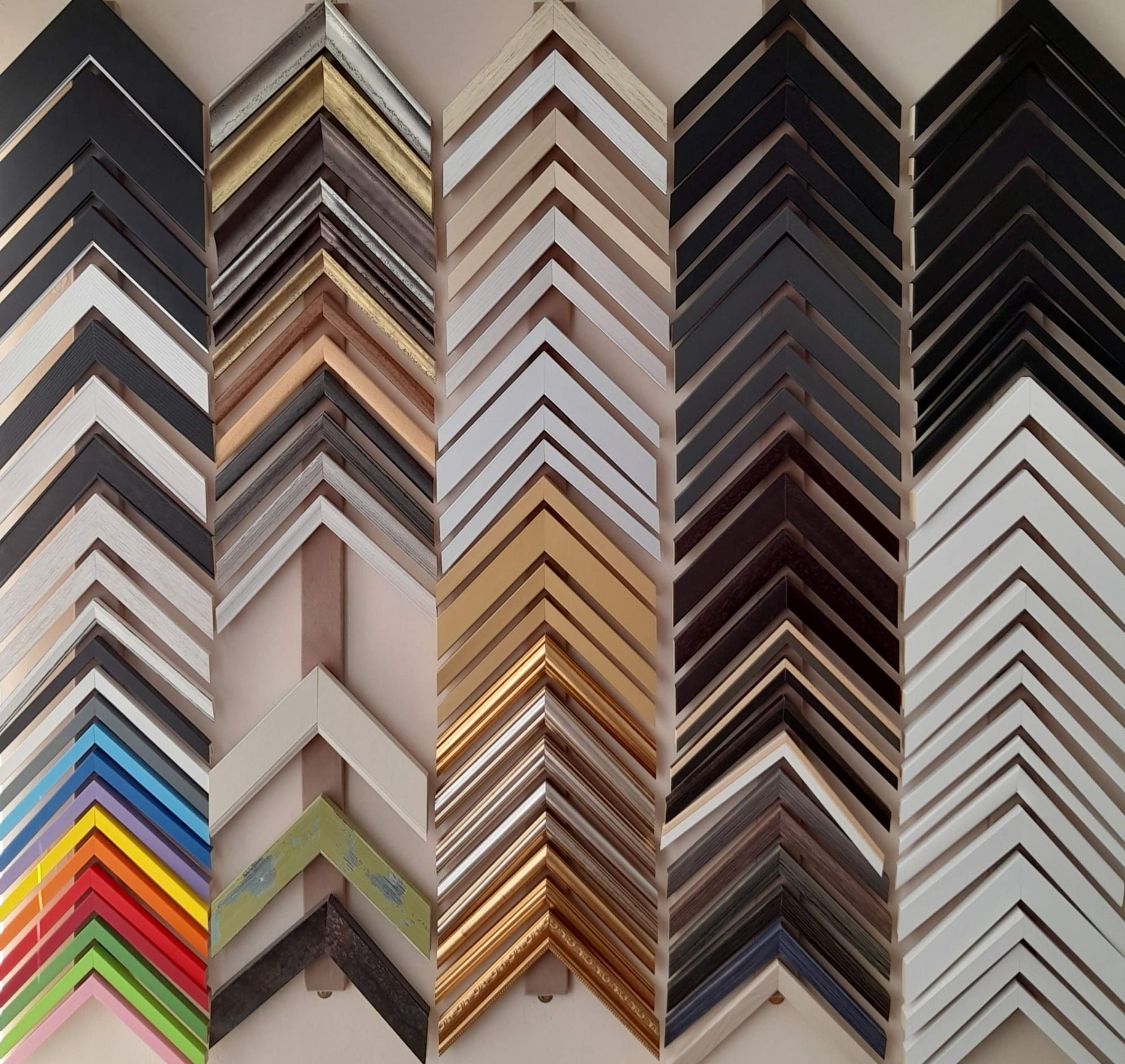 We can produce a frame to suit your project in any one of hundreds of available frame mouldings. If you visit us (by appointment only) you can choose from over 200 physical frame chevron samples - there's something to suit every job.